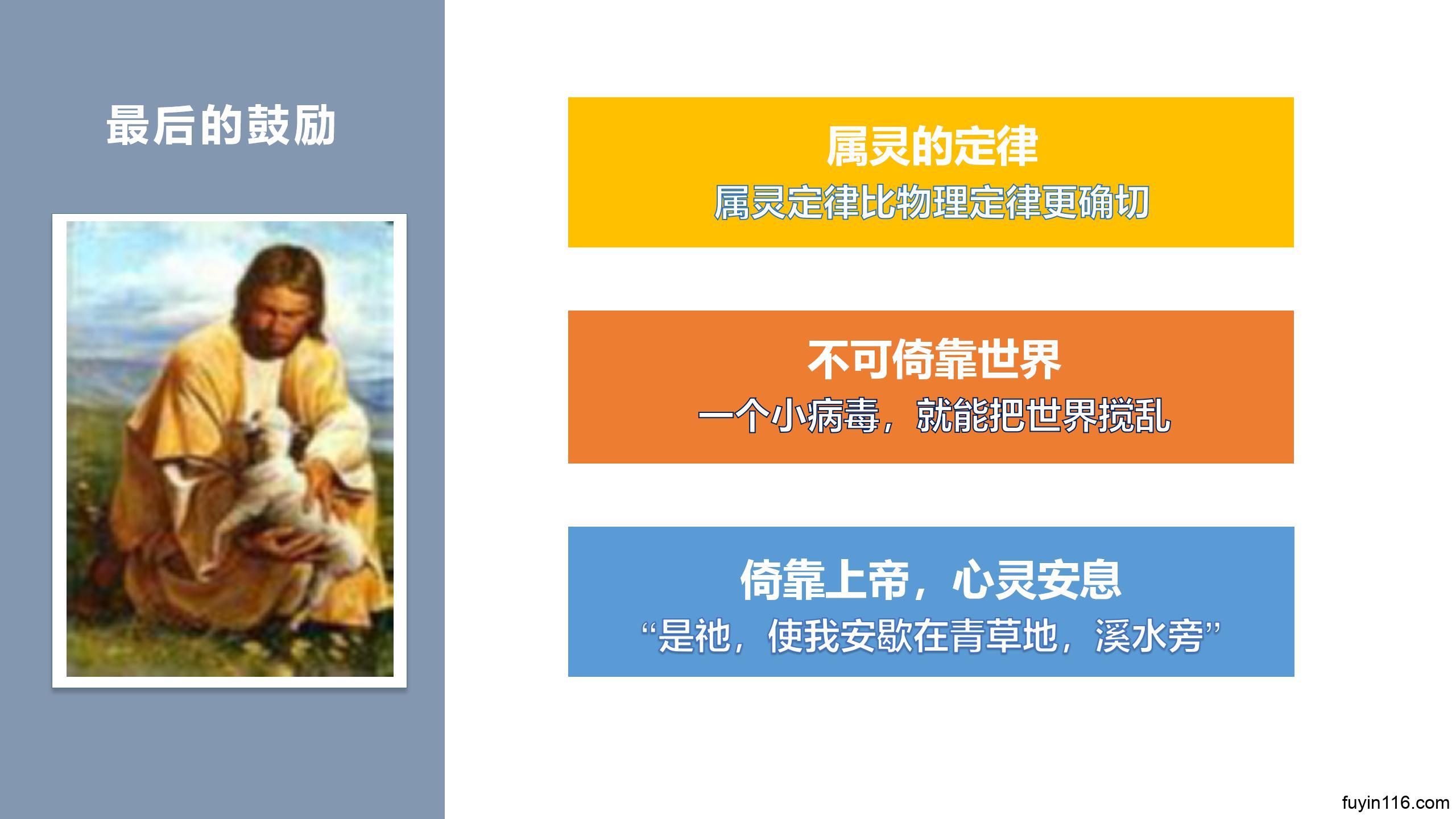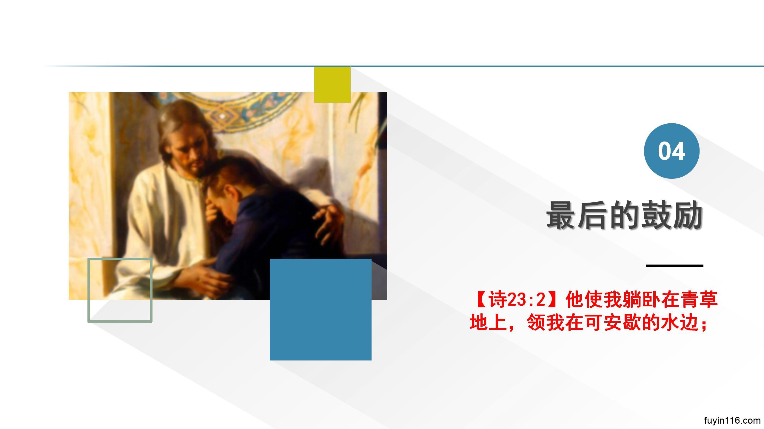 求主祝福我们的《诗篇23篇》系列讲道录音,让我们所讲的,能帮助弟兄姊妹看见基督,能让更多的心灵得到安慰和激励。