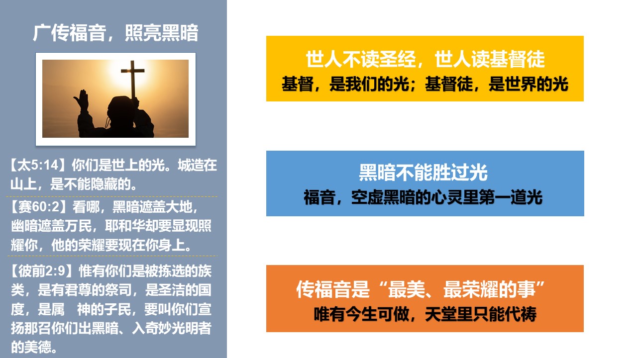 让我们更认识福音的大能,更注重与主同行、与神相交的生命建造,更勇敢为主作见证。