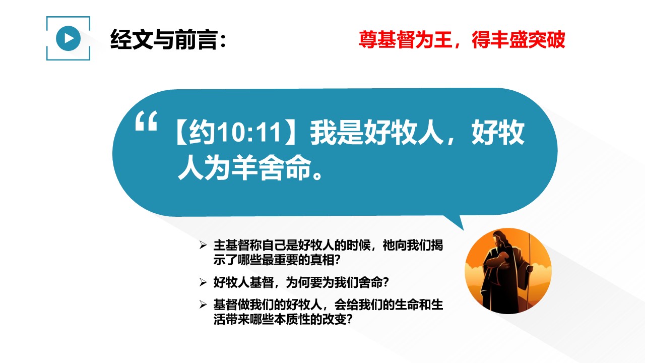 基督做我们的好牧人,会给我们的生命和生活,带来哪些本质的改变?