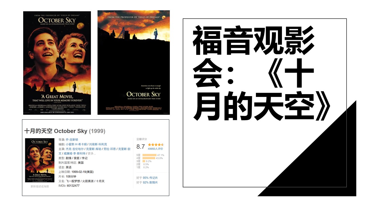 今天,我们看一部1999年上映的电影佳作《十月的天空》。