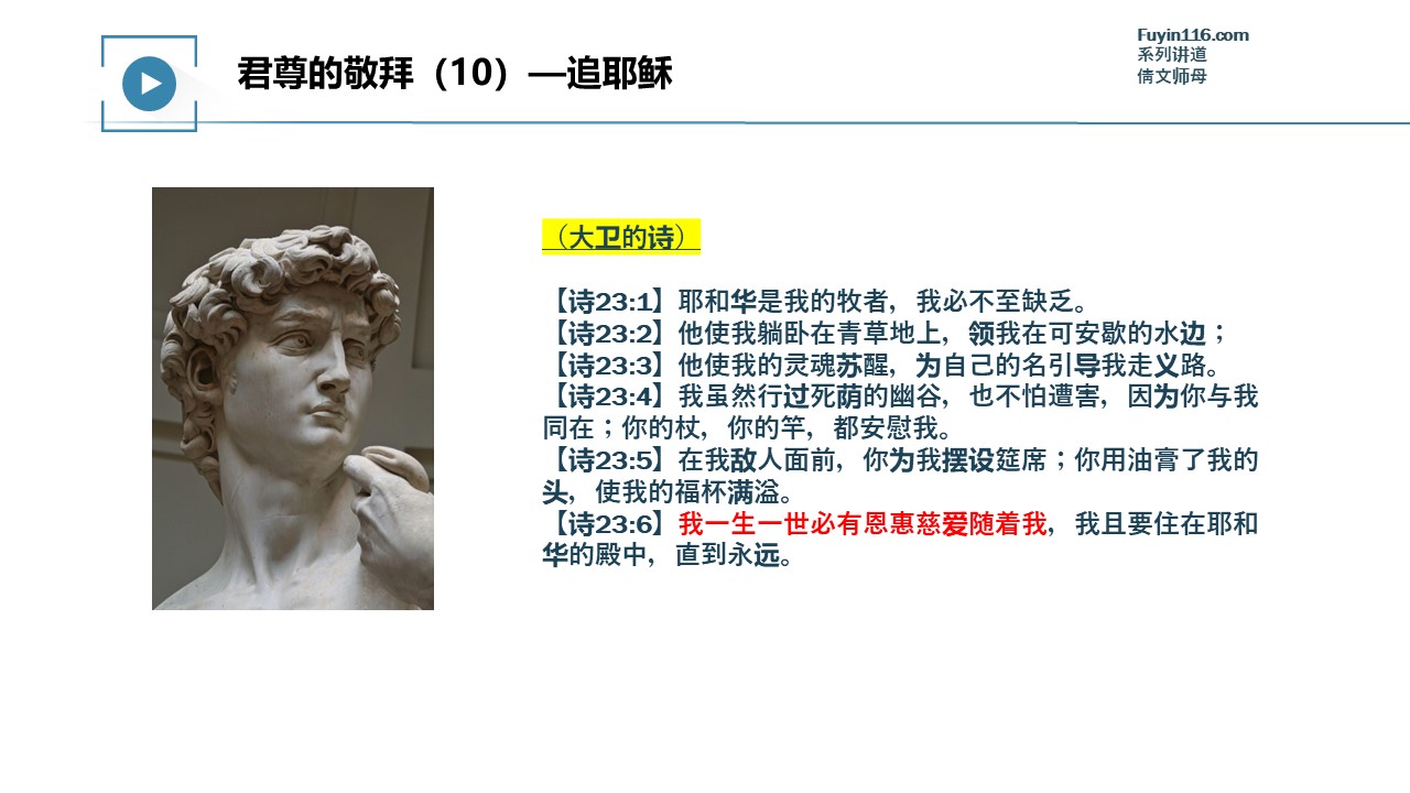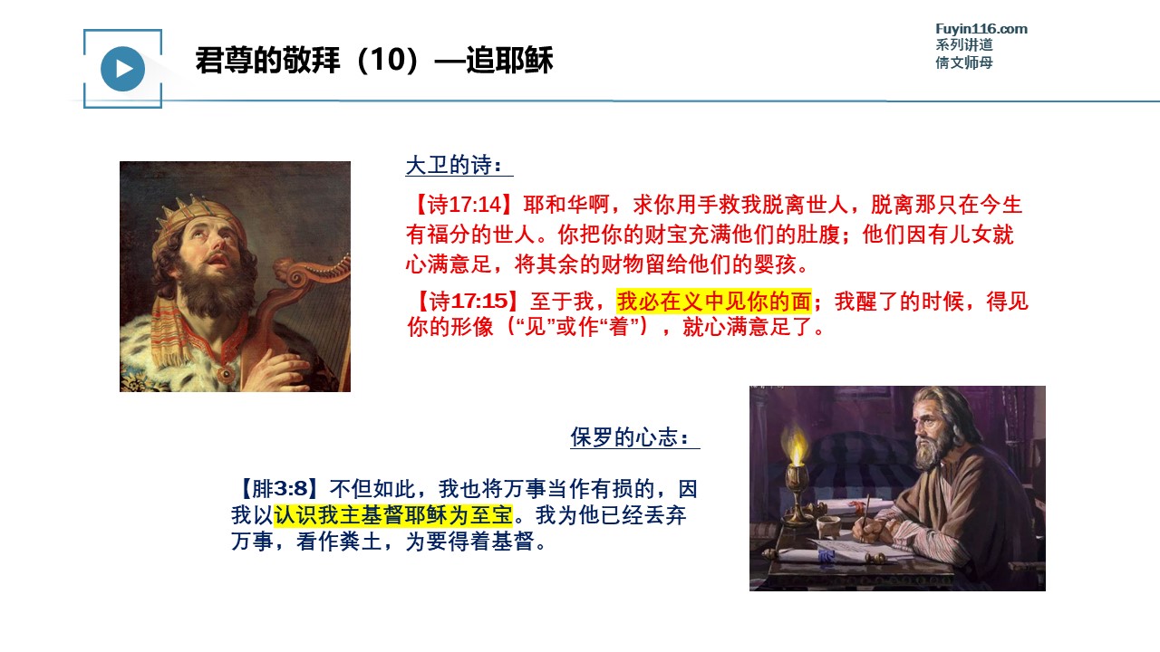 视频整理完成,我们就会把讲道视频共享出来,在此之前,可以观看上一讲《君尊的敬拜(09)大能的福音》的讲道视频: