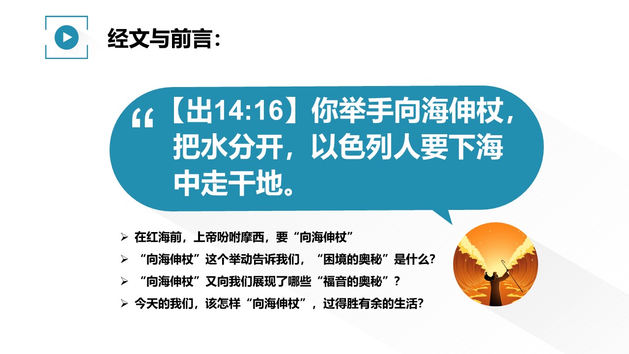 在红海前,上帝吩咐摩西,要“向海伸杖”