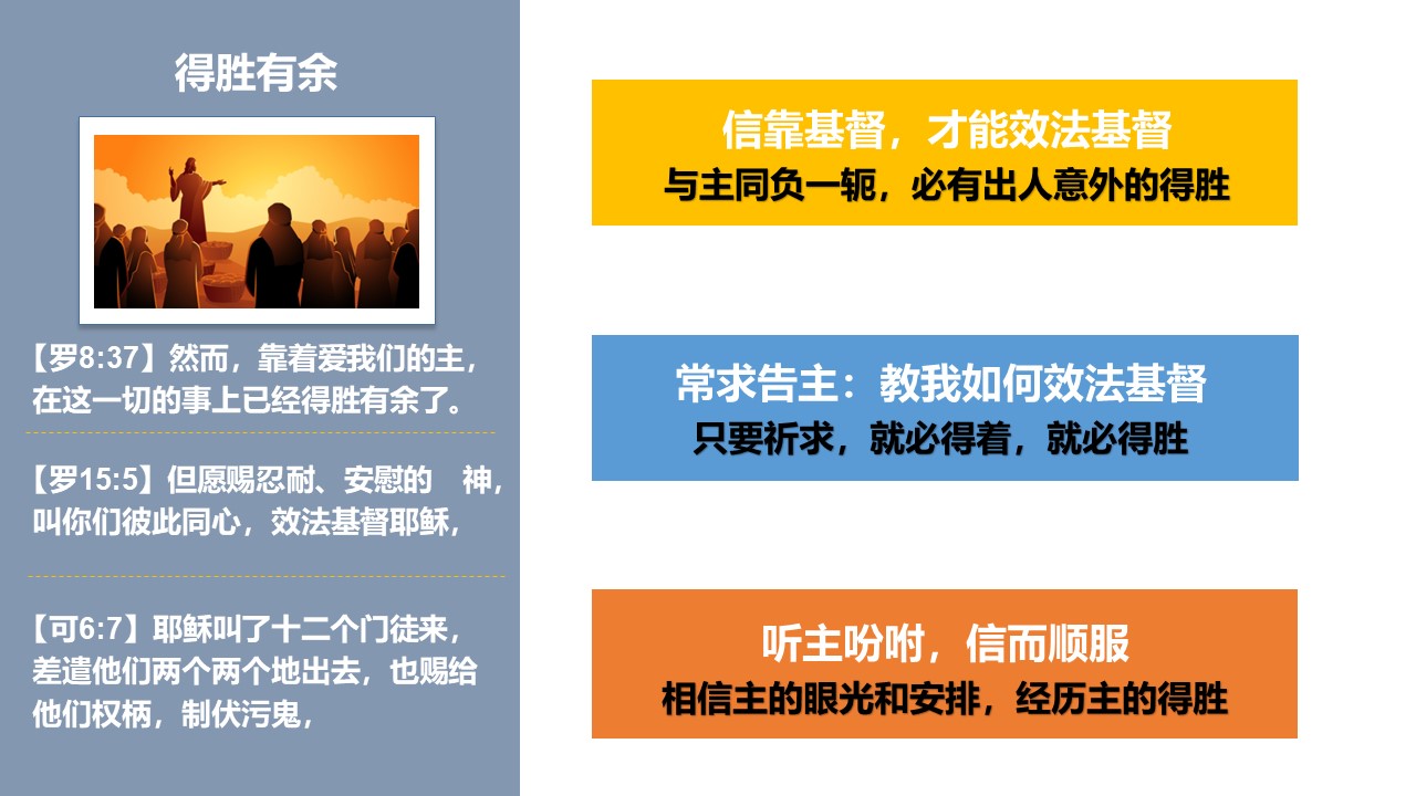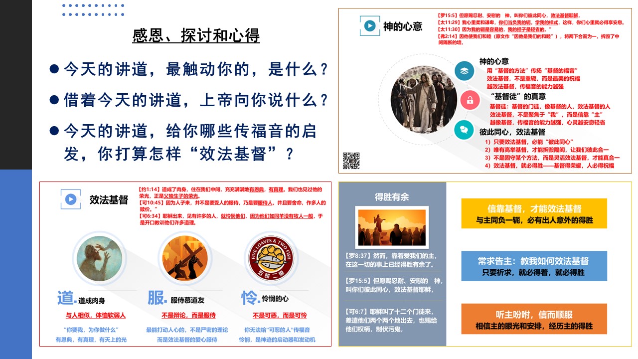 让我们更认识福音的大能,更注重与主同行、与神相交的生命建造,更勇敢为主作见证。