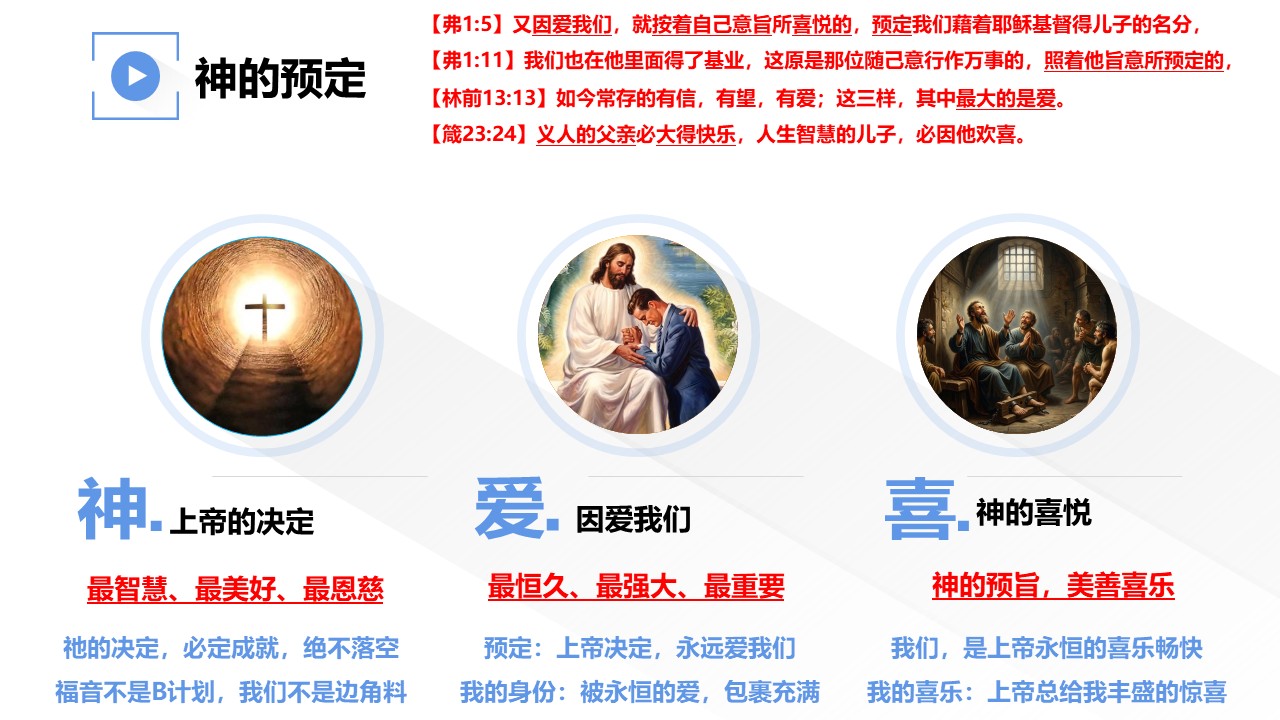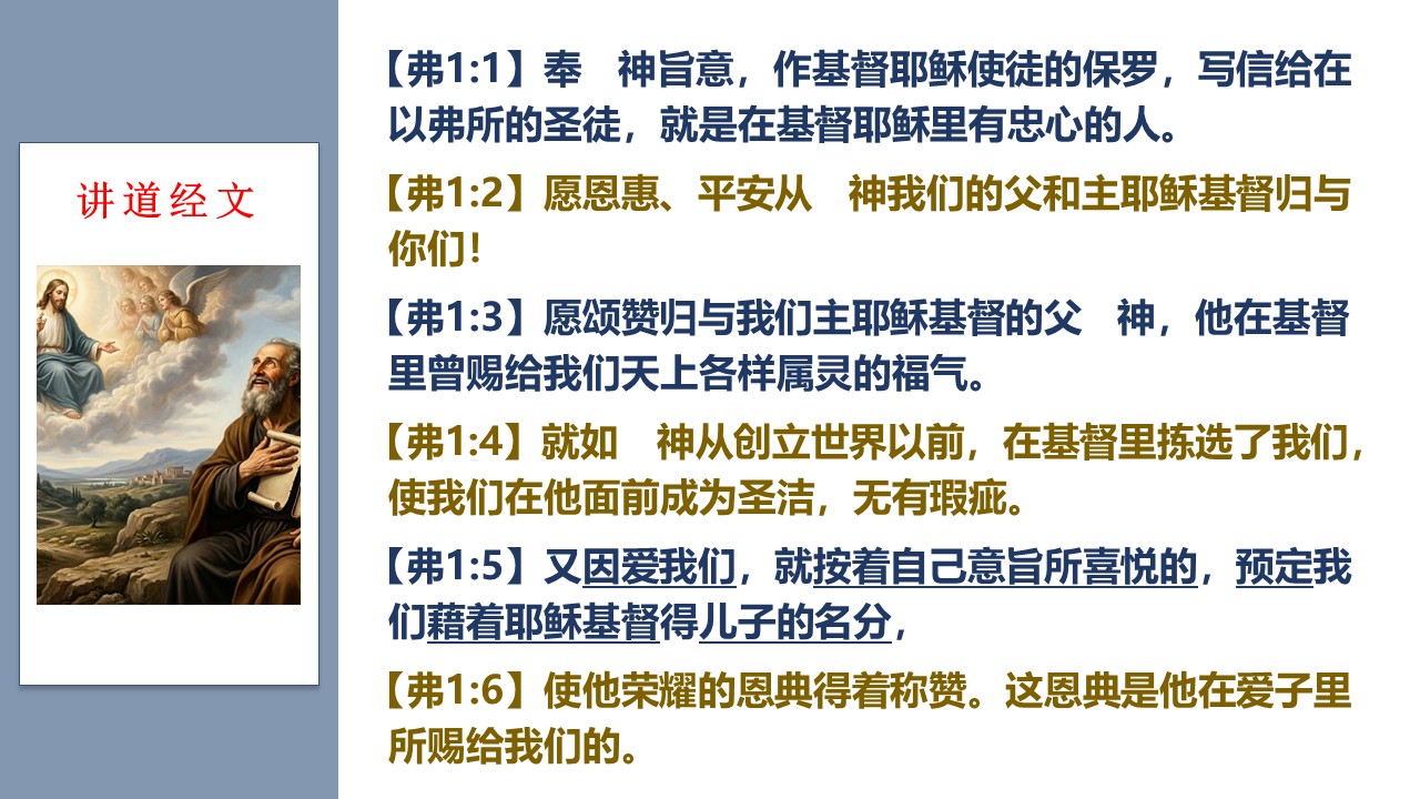 《以弗所书》一开篇,圣徒保罗就讲到“上帝预定我们,得儿子的名分”这个荣耀的真理。